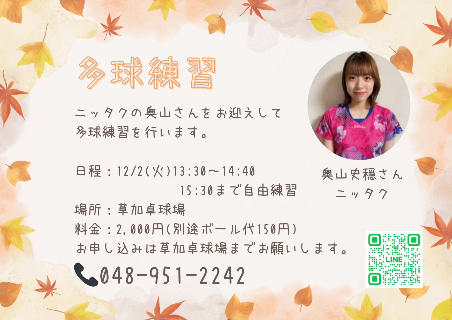 2025.12.2 ニッタク奥山さんによる“多球練習会”が再び帰ってきます!